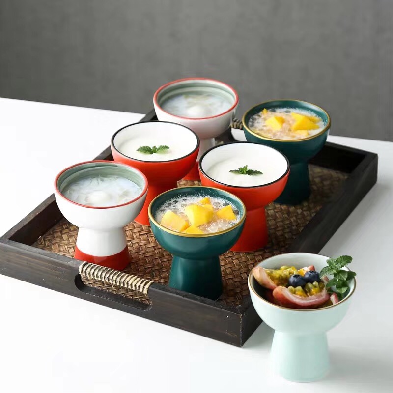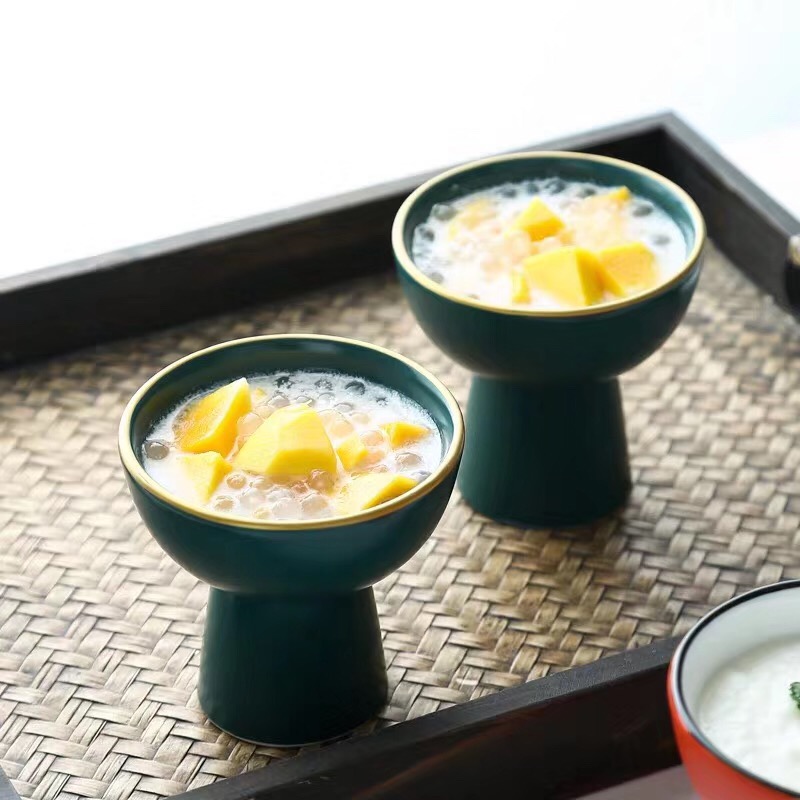 高脚创意甜品碗-色釉