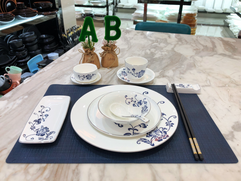 骨瓷-青花美人加金餐具