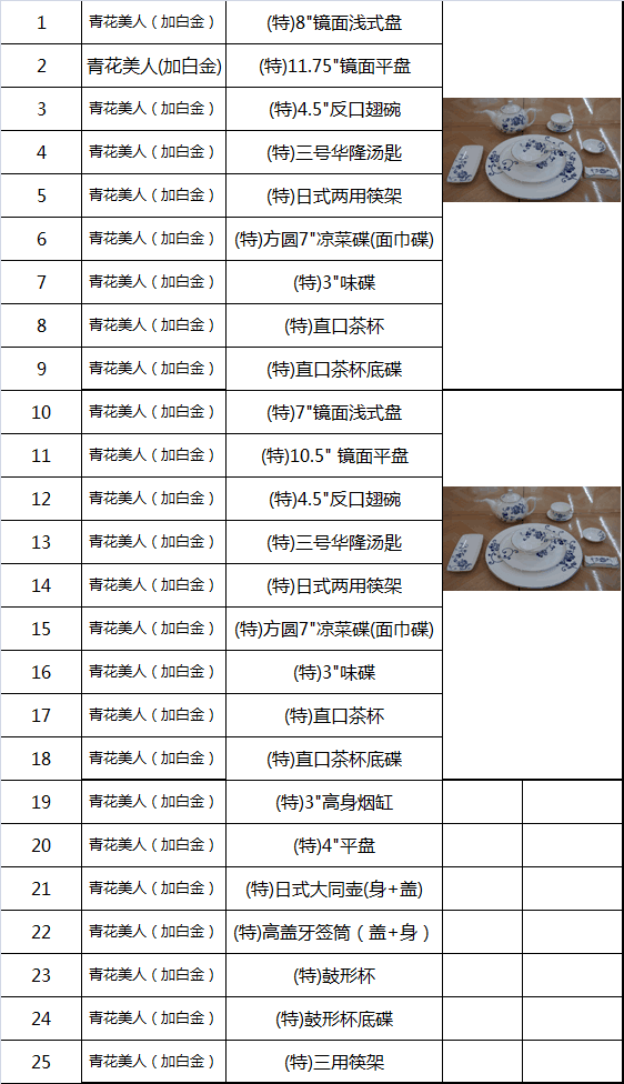 » 骨瓷-青花美人加金餐具